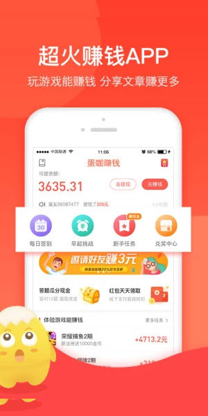 蛋咖赚钱是PC蛋蛋旗下APP,让你的手机变身神奇的赚钱工具,让你赚钱赚到欲罢不能!热门手游棋牌,玩就能赚钱。海量应用,体验奖现金,海量低门槛、易上手的任务等你体验,不容错过的赚钱选择!